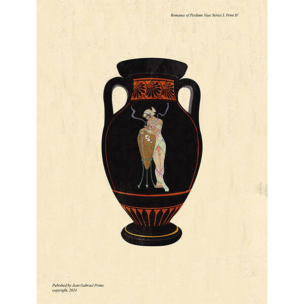 Perfume Romance Vase Prints use traditional vase style and vintage fashion and lifetstye images from the early 1900s by famous illustrators. Perfume Romance Vase Prints are created by Jean Gabrael Studio.