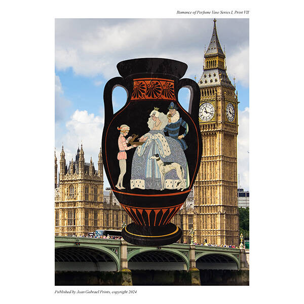 Perfume Romance Vase Prints use traditional vase style and vintage fashion and lifetstye images from the early 1900s by famous illustrators. Perfume Romance Vase Prints are created by Jean Gabrael Studio.
